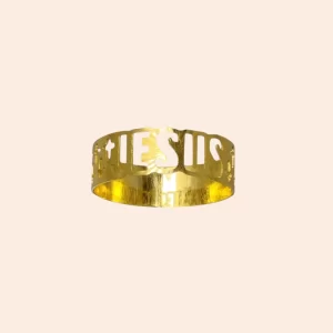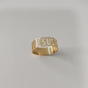 Símbolo de fé e estilo, este anel delicado com o nome “Jesus” vazado no aro combina espiritualidade e sofisticação. Confeccionado em Ouro Amarelo 18K, é perfeito para quem deseja expressar sua crença com elegância e discrição. Ideal para uso diário ou como presente significativo.