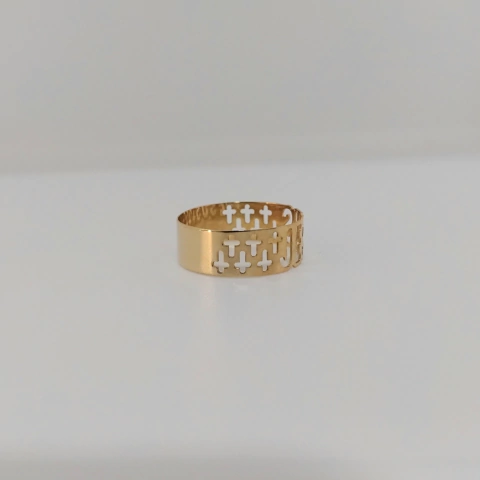 Anel Jesus Vazado em Ouro Amarelo 18K