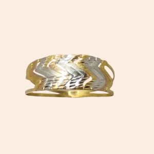 Design moderno e sofisticado com detalhes vazados que valorizam a mistura harmoniosa dos três tons do ouro 18K: amarelo, branco e rosé. Uma joia versátil e cheia de personalidade, perfeita para quem busca elegância com um toque contemporâneo.