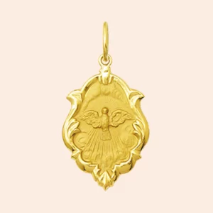 O Espírito Santo é considerado o guia e consolador, e este pingente, com sua forma delicada, transmite serenidade e proteção. O brilho do ouro 18K confere à peça um toque de sofisticação e durabilidade, tornando-a uma escolha perfeita tanto para o uso diário quanto para momentos de oração e reflexão.